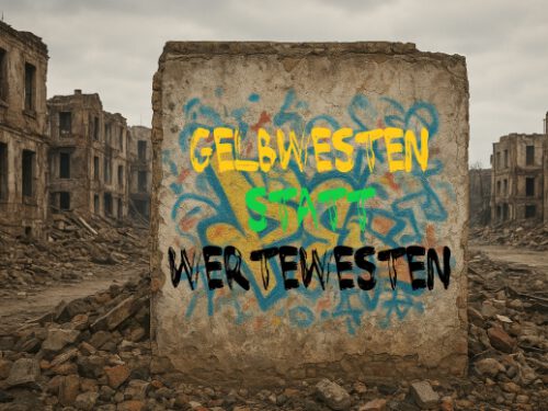 Umso geiler, als der anerkannte Wahrheitsexperte Professor Dr. Carlo Truth auf allen verfügbaren Kanälen versichert: „Die Zerstörung Europas ist absolut notwendig und alternativlos, sonst zerstört uns das böse Monster Russzilla. Es wartet quasi nur darauf, Europa zu zertrümmern.“ „Ja, dann“, sagen viele Bürger, „sind wir selbstverständlich froh und dankbar, dass Uzilla uns durch ihre Zerstörung vor der anderen, der bösen Zerstörung bewahrt. Sie macht quasi die Drecksarbeit für uns. Sonst müssten wir unsere Häuser selbst abreißen.“