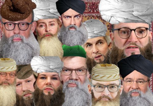 Und wer Extrempazifismus-affine Freunde hat wie den expresszionistischen Friedenstaubenmaler Zenjamin Shitanyahoo und den künftigen Friedensknobelbecherpreisträger Kobald Lump, befindet sich stets auf der friedenssichernden Seite. Beim Ausblick auf soviel Endsiegfrieden schieben wir Munich Globe Bloggers quasi eine Kollektiv-Erektion2 die wir wie eine Jubelperserstandarte Richtung Berlin präsentieren, um unserem übergroßen Kriegsschürer- und Apokalypse-Idol zu salutieren.